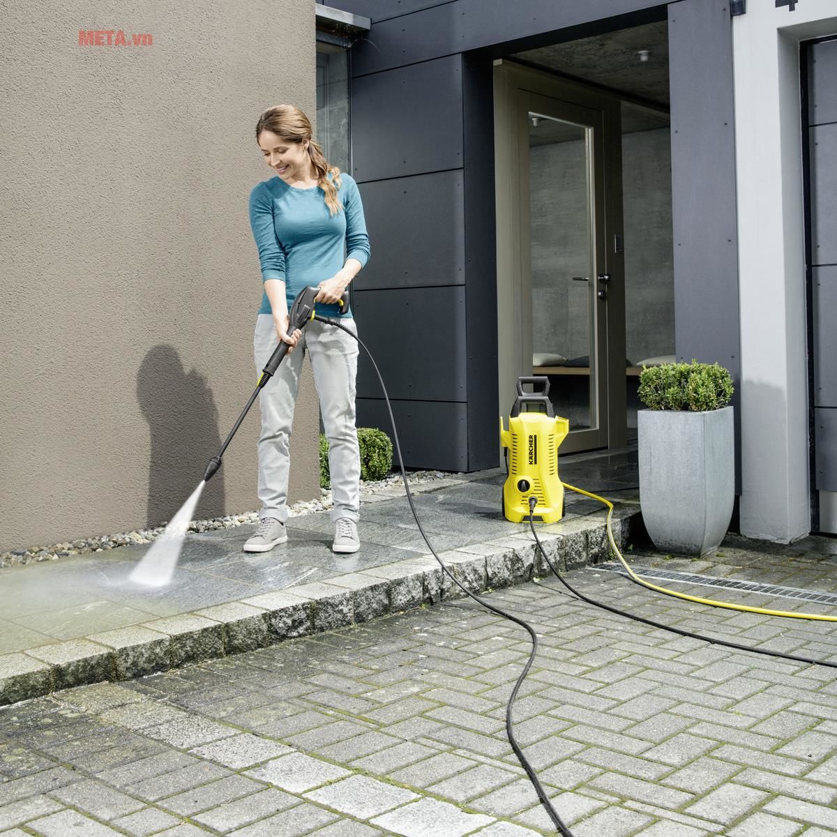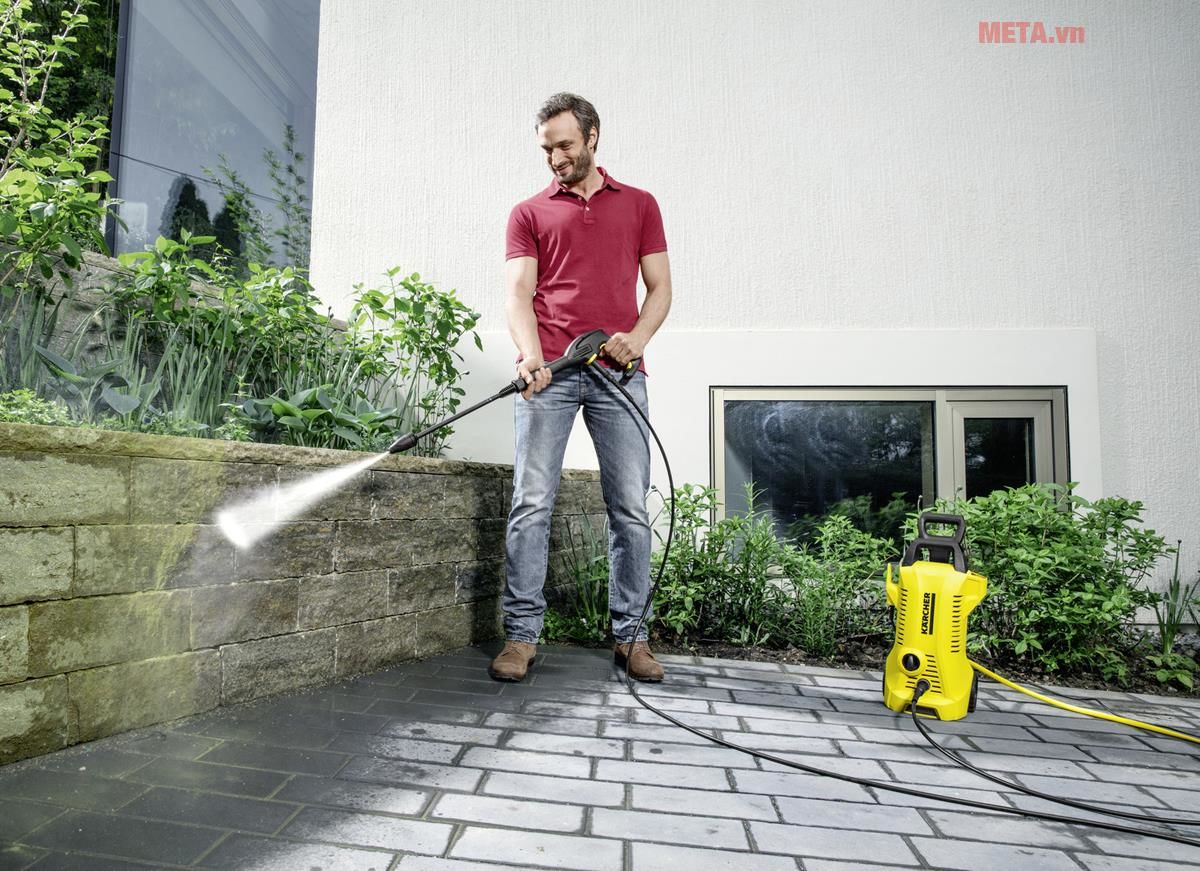 Máy phun xịt áp lực Karcher K2 Premium Full Control là dòng mới nhất được cho ra mắt hồi đầu 2019 với phụ kiện cơ bản như súng cao áp, dây phun áp lực 6m, bình phun xà phòng,... Công suất 1.400W có thể đánh xoáy mọi vết bẩn cứng đầu bằng áp lực nước lớn 110bar, giúp bạn rửa xe, phun sạch rong rêu bám trên sân tường.